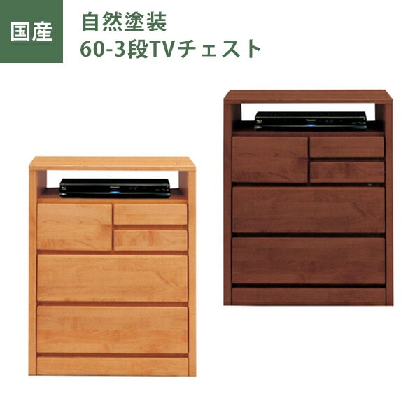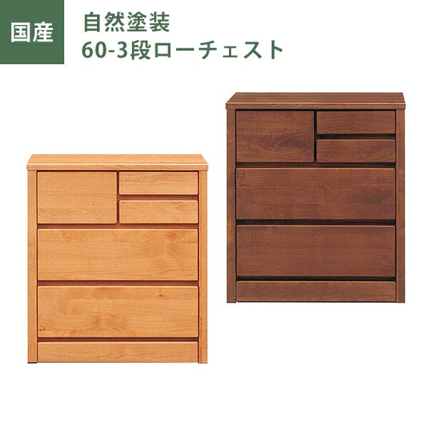 ローチェスト 自然塗装 幅60cm 引出し3段 チェスト タンス たんす アルダー材 ナチュラル ブラウン オイル塗装 日本製 国産 大川家具 完成品