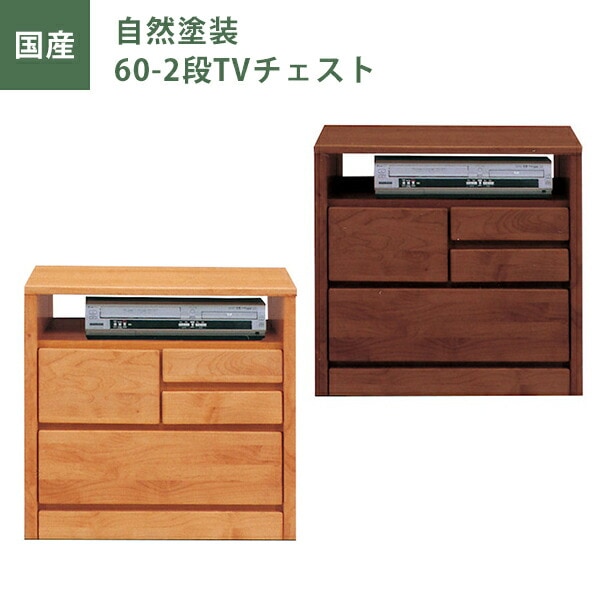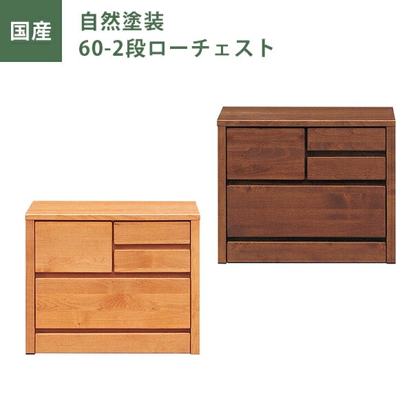 ローチェスト 自然塗装 幅60cm 引出し2段 チェスト タンス たんす ナチュラル ブラウン オイル塗装 日本製 国産 大川家具 完成品