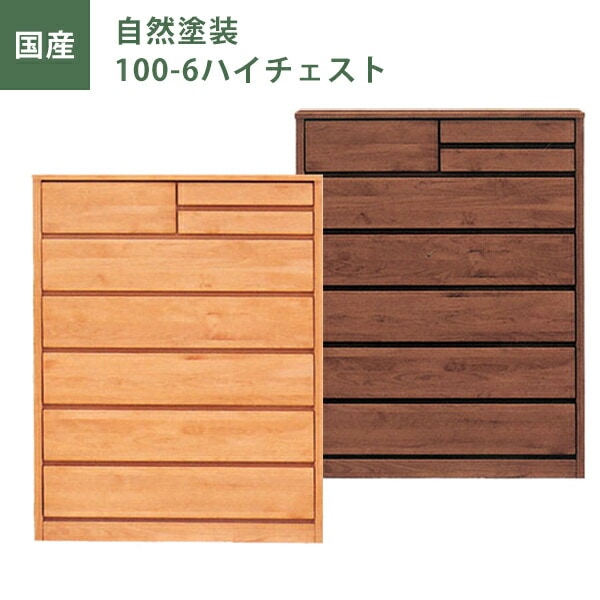100ハイチェスト チェスト タンス たんす 幅100cm 6段 ナチュラル ブラウン 自然塗装 日本製