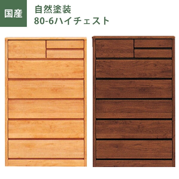 80ハイチェスト 自然塗装 チェスト タンス たんす 幅80cm 引き出し6段 アルダー材 ナチュラル ブラウン オイル塗装 日本製 完成品