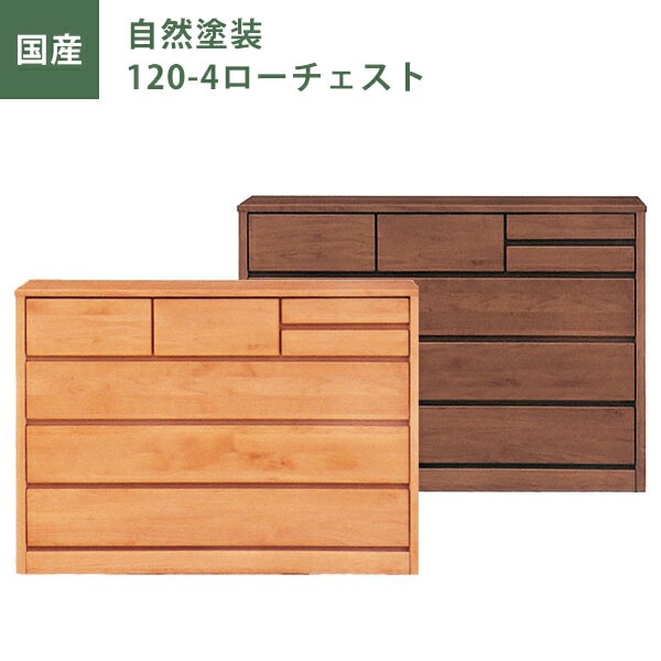 120ローチェスト チェスト タンス たんす 幅120cm 4段 ナチュラル ブラウン 自然塗装 日本製