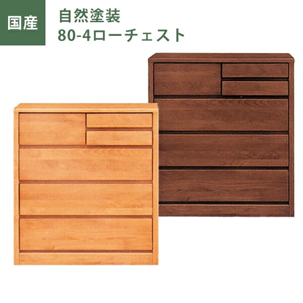 80ローチェスト 自然塗装 チェスト タンス たんす 幅80cm 引出し4段 アルダー材 ナチュラル ブラウン オイル塗装 日本製 国産 大川家具
