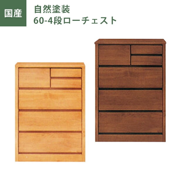 60ローチェスト 自然塗装 チェスト タンス たんす 幅60cm 引出し4段 アルダー材 ナチュラル ブラウン オイル塗装 日本製 完成品