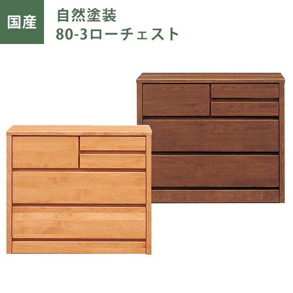 ローチェスト 自然塗装 幅80cm 引出し3段 チェスト タンス たんす ナチュラル ブラウン オイル塗装 日本製 国産 大川家具 完成品