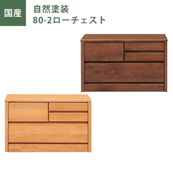 ローチェスト 自然塗装 幅80cm 引出し2段 チェスト タンス たんす ナチュラル ブラウン オイル塗装 日本製 国産 大川家具 完成品