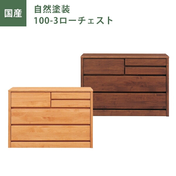 ローチェスト 自然塗装 幅100cm 引出し3段 チェスト タンス たんす ナチュラル ブラウン オイル塗装 日本製 国産 大川家具 完成品
