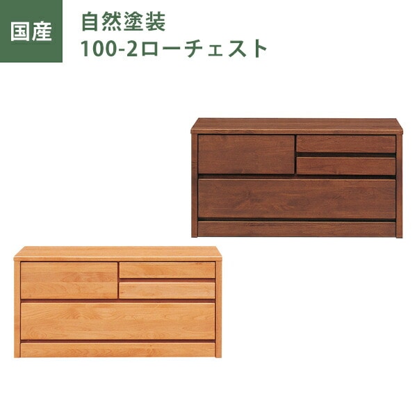 ローチェスト チェスト タンス たんす 幅100cm 2段 ナチュラル ブラウン 自然塗装 日本製