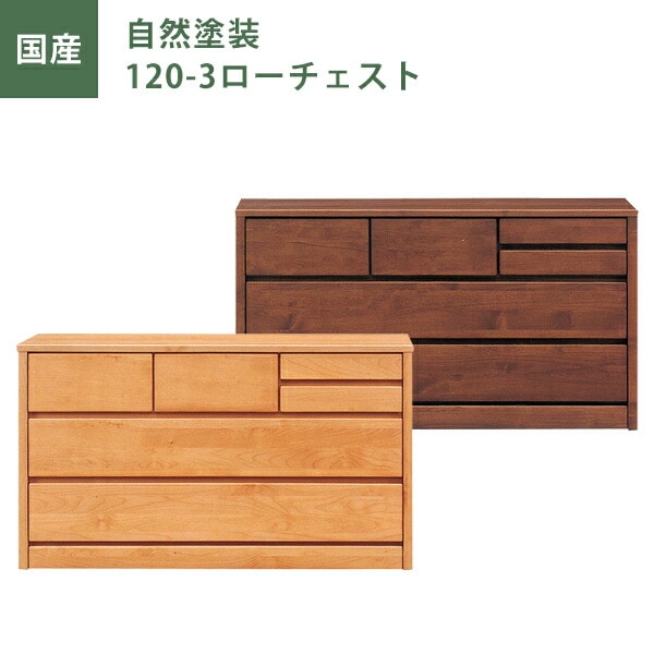 ローチェスト チェスト タンス たんす 幅120cm 3段 ナチュラル ブラウン 自然塗装 日本製