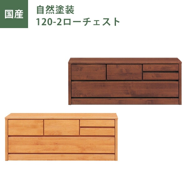 ローチェスト チェスト タンス たんす 幅120cm 2段 ナチュラル ブラウン 自然塗装 日本製