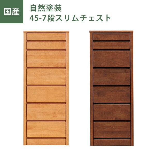 スリムチェスト ハイチェスト 自然塗装 幅45cm 引出し7段 チェスト タンス たんす ナチュラル ブラウン オイル塗装 日本製 国産 大川家具 完成品