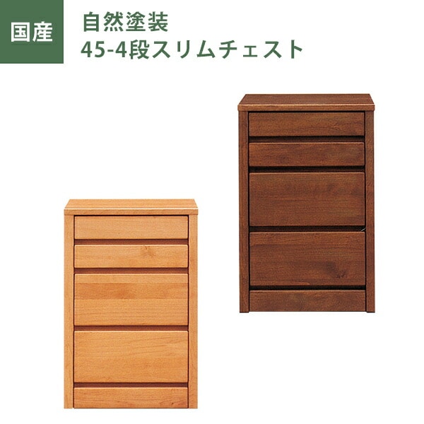 スリムチェスト ローチェスト 自然塗装 幅45cm 引出し4段 チェスト タンス たんす ナチュラル ブラウン オイル塗装 日本製 国産 大川家具 完成品