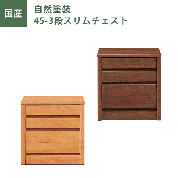 スリムチェスト ローチェスト 自然塗装 幅45cm 引出し3段 チェスト タンス たんす ナチュラル ブラウン オイル塗装 日本製 国産 大川家具 完成品