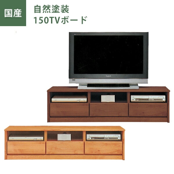 テレビ台 自然塗装 幅150 テレビボード AVボード アルダー材 木製 ナチュラル/ブラウン オイル仕上げ 引出しフルオープンレール付 日本製 おしゃれ 完成品 北欧