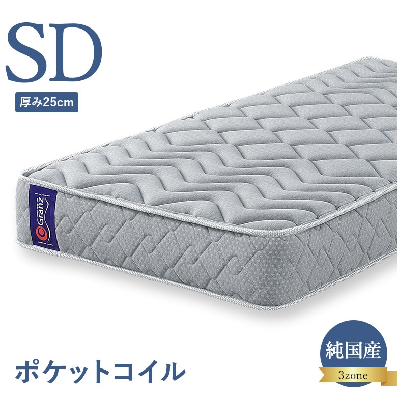 ポケットコイルマットレス セミダブルサイズ 3ゾーン構造 並行配列 25cm厚 エッジサポート 日本製 グランツ Granz セミダブル用 SDサイズ