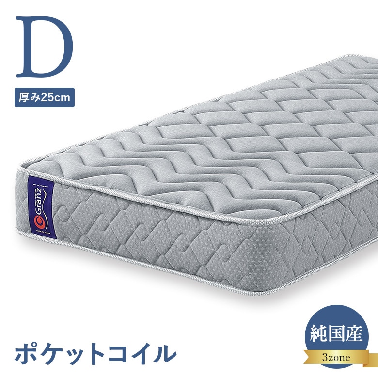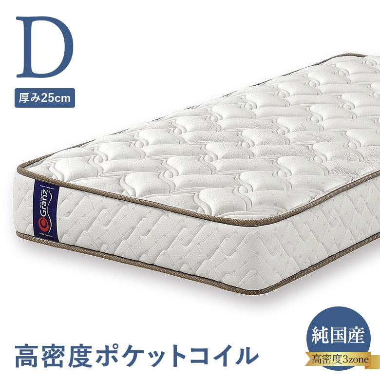 ポケットコイルマットレス ダブルサイズ 高密度ポケットコイル 3ゾーン構造 並行配列 25cm厚 エッジサポート ナノポケット 日本製 グランツ Granz Dサイズ