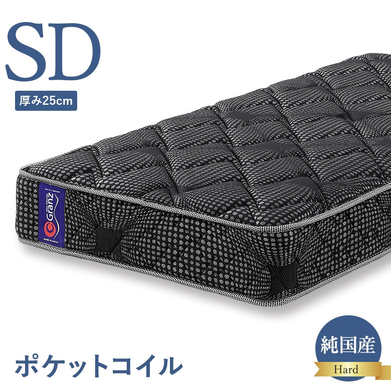 ポケットコイルマットレス セミダブルサイズ ハードタイプ 交互配列 25cm厚 エッジサポート 硬め 硬い 日本製 グランツ Granz セミダブルベッド用 SD