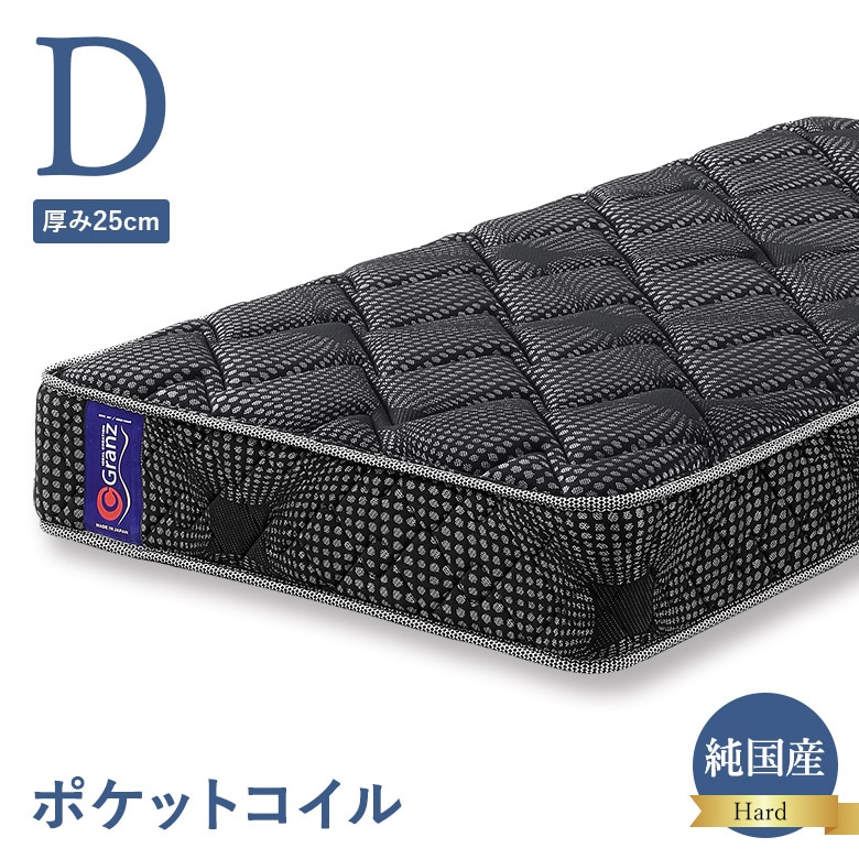 ポケットコイルマットレス ダブルサイズ ハードタイプ 交互配列 25cm厚 エッジサポート 硬め 硬い 日本製 グランツ Granz ダブルベッド用 D