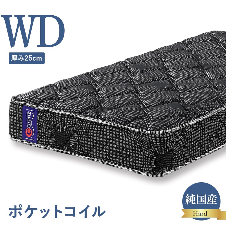 ポケットコイルマットレス ワイドダブルサイズ ハードタイプ 交互配列 25cm厚 エッジサポート 硬め 硬い 日本製 グランツ Granz ワイドダブルベッド用 WD