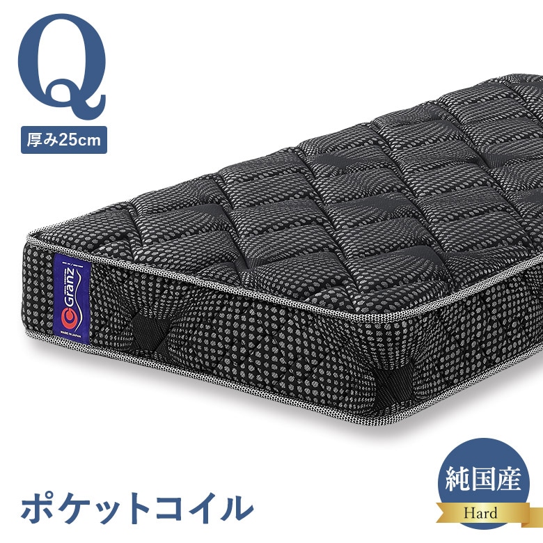 ポケットコイルマットレス クイーンサイズ(マット2つで1セット) Q ハードタイプ 交互配列 25cm厚 エッジサポート 硬め 硬い 日本製 グランツ Granz 受注生産