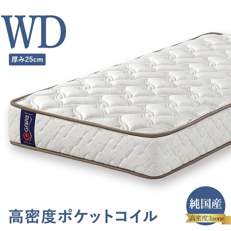 ポケットコイルマットレス ワイドダブルサイズ 高密度ポケットコイル 3ゾーン構造 並行配列 25cm厚 エッジサポート ナノポケット 日本製 グランツ Granz WD