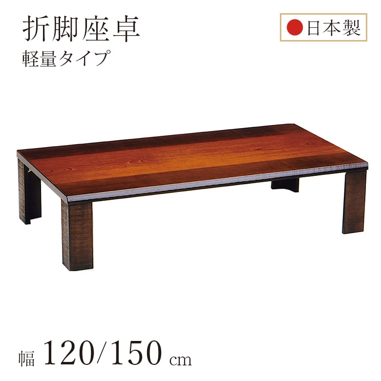 座卓 折れ脚 折りたたみ 軽量 軽い ローテーブル 幅120cm / 幅150cm ケヤキ 欅 ブラウン 木製 国産 日本製 和室 座敷机 和風 和モダン 完成品