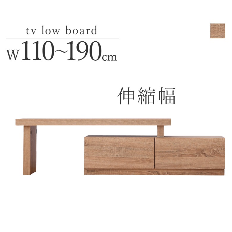 伸縮TVボード 幅110~190cm ハイタイプ ナチュラル リビング収納