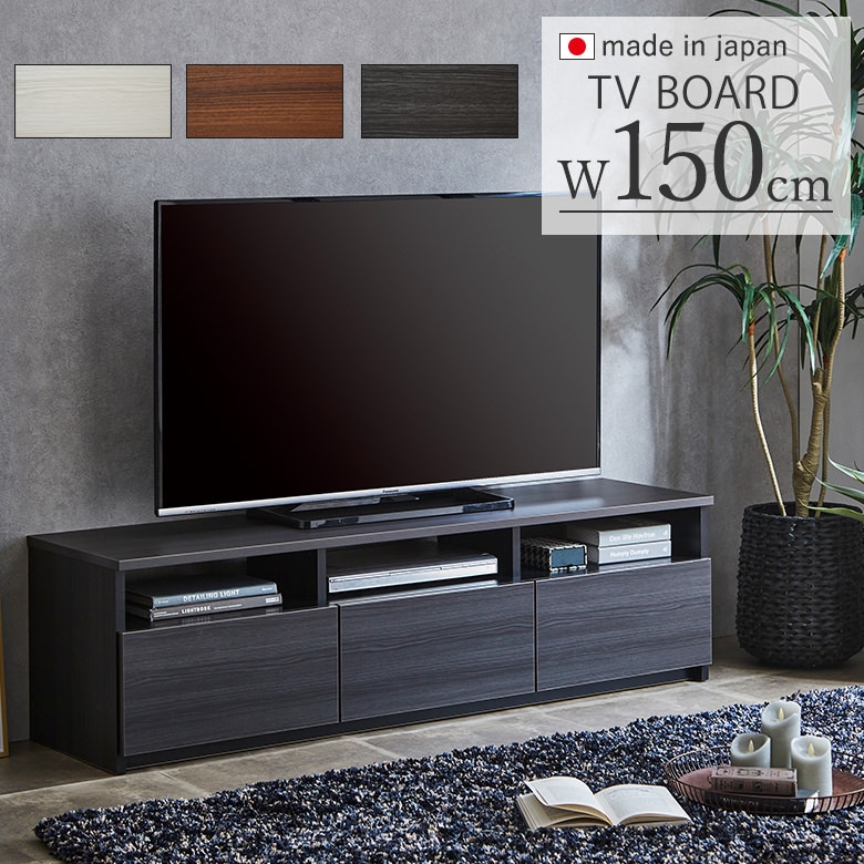 150テレビボード 幅150cm 日本製 強化紙 ホワイト ブラウン ダークブラウン 完成品 日本製【引出しはフルオープンレール使用】
