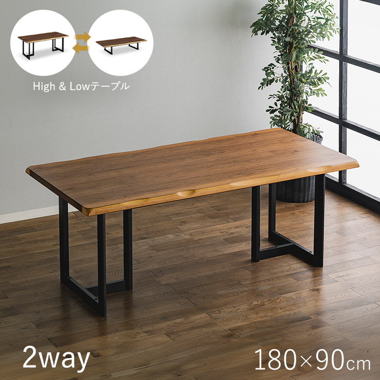 2way ハイ&ローテーブル 180×90 リビング&ダイニング兼用 ダイニングテーブル リビングテーブル ローテーブル 座卓 ウォールナット突板 UV塗装
