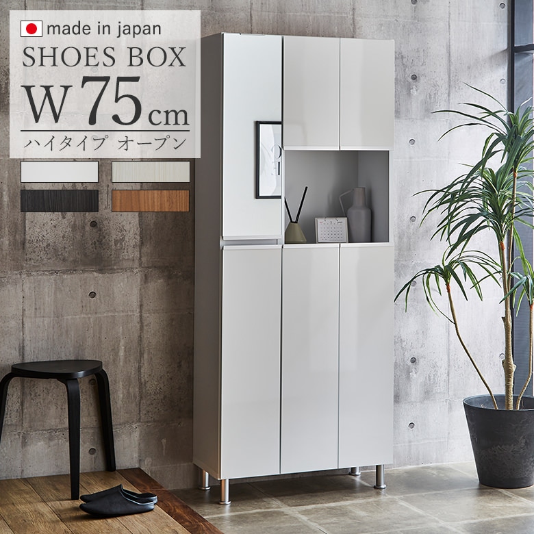 シューズボックス 下駄箱 靴箱 幅75cm ダークブラウン ホワイト ナチュラル 玄関収納 ハイタイプ 日本製