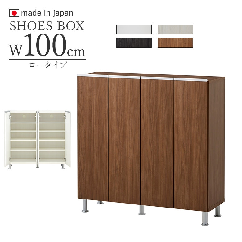 100シューズボックス ロータイプ 下駄箱 シューズボックス 幅100cm 強化紙 ツヤ有 ロータイプ プラスチック棚 取っ手アルミ製 日本製