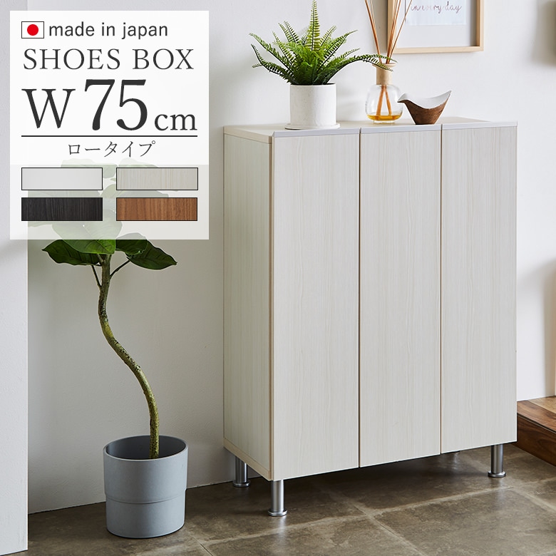 シューズボックス 下駄箱 靴箱 幅75cm ダークブラウン ホワイト ナチュラル 玄関収納 ロータイプ 日本製