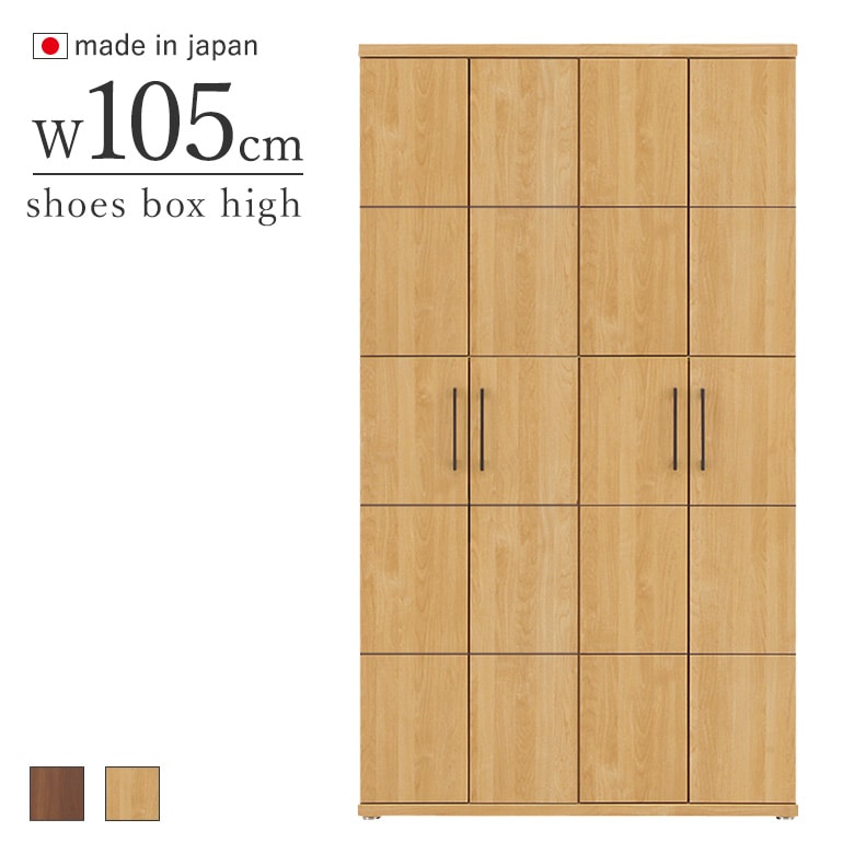 シューズボックス 105cm ハイタイプ 40足収納 ブラウン・ナチュラル フリーボード 完成品 日本製
