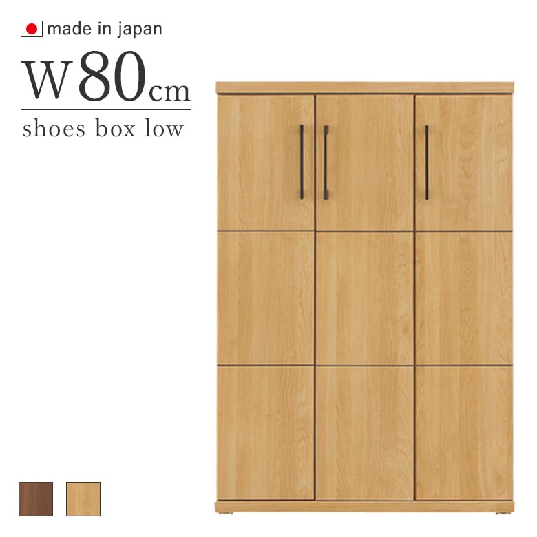 シューズボックス 80cm ロータイプ 18足収納 フリーボード ブラウン・ナチュラル 完成品 日本製