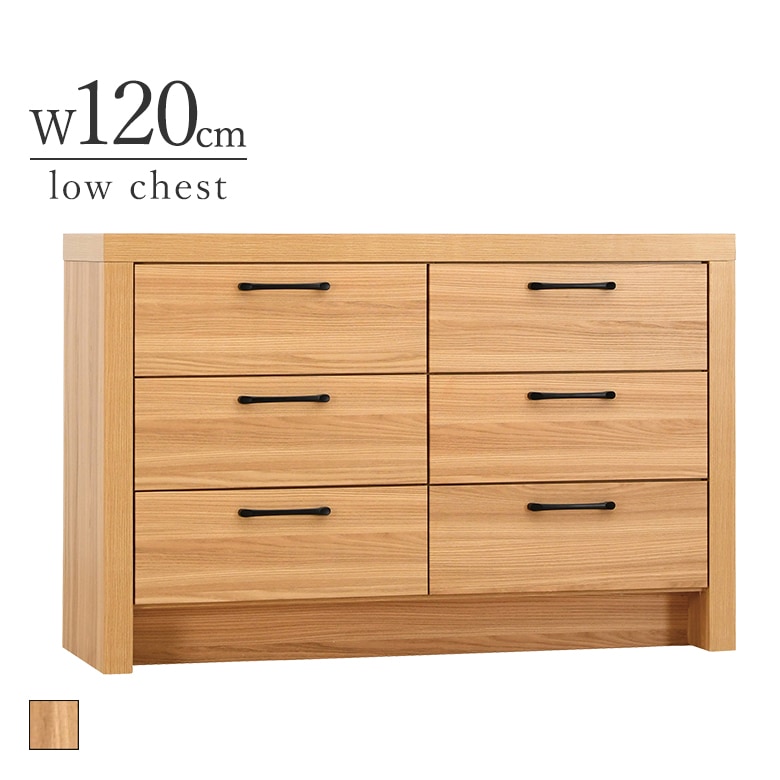 120-3チェスト 幅120cm ナチュラル オーク木目柄 完成品 フルスライドレール付き ローチェスト