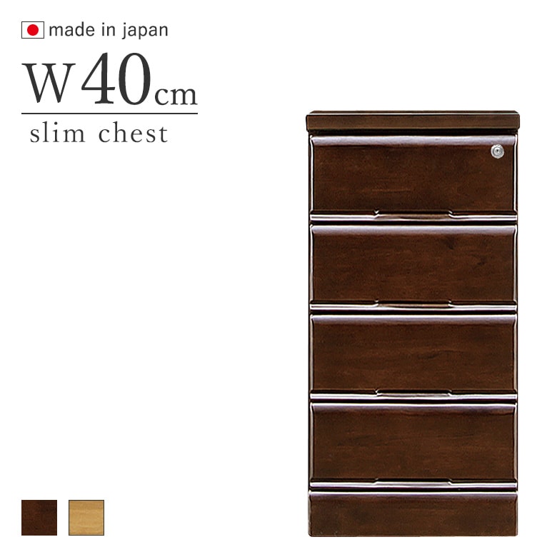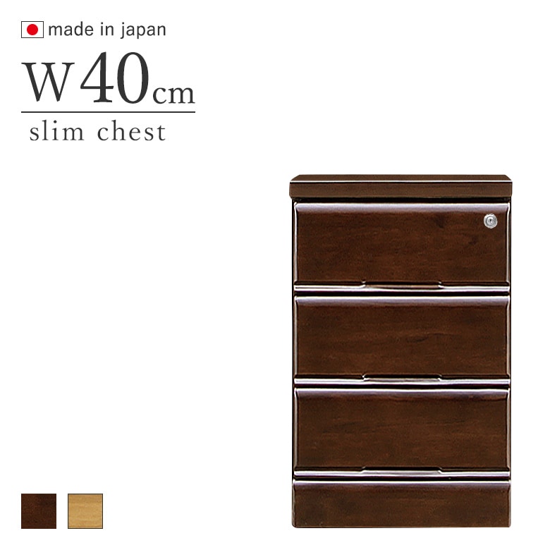 鍵付きチェスト 40-4段 引出し4段 スリムチェスト ブラウン・ナチュラル 日本製 完成品