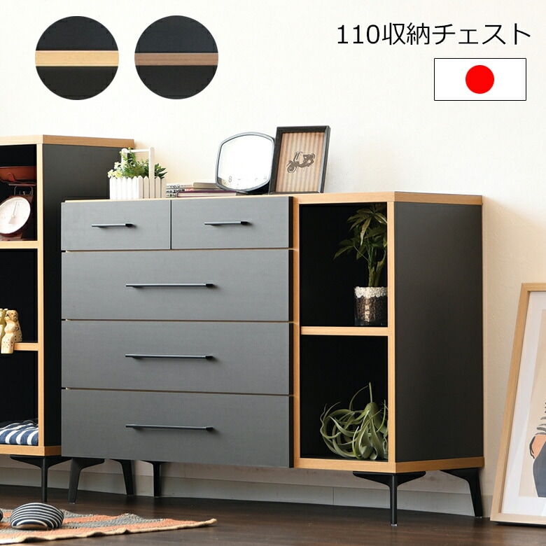 リビング収納 チェスト 幅109cm 5段引き出し 強化紙 引き出しフルオープンレール付き かわいい おしゃれ 北欧 グレー グレイ くすみカラー 北欧 完成品 日本製
