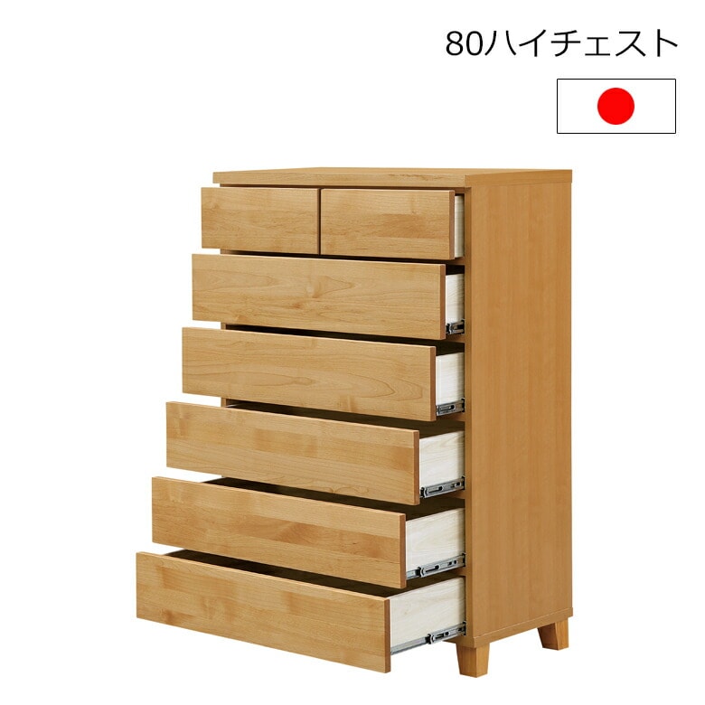 アルダー材 80ハイチェスト 脚付きチェスト 幅80cm アルダー 木製 北欧 オイル塗装 引出し箱組 ナチュラル 完成品 日本製 大川家具