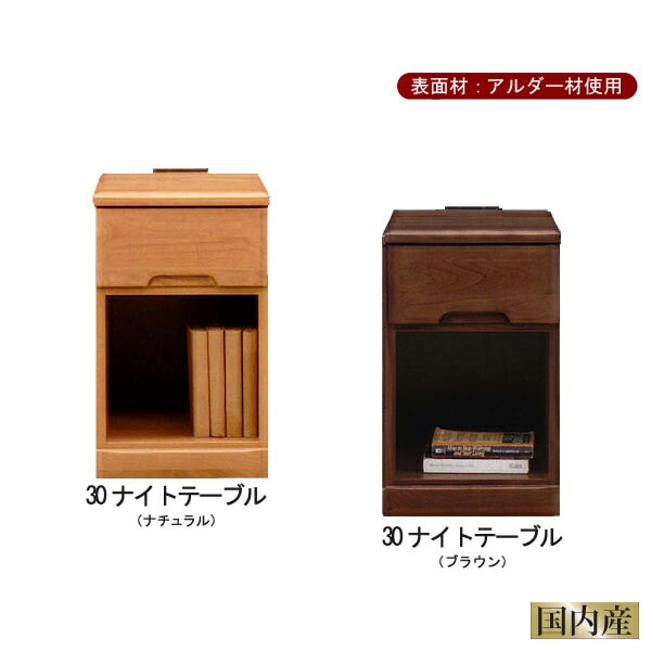 ナイトテーブル 幅30 引出し1段 サイドテーブル コンセント付き アルダー材 ナチュラル ブラウン 完成品 日本製 大川家具