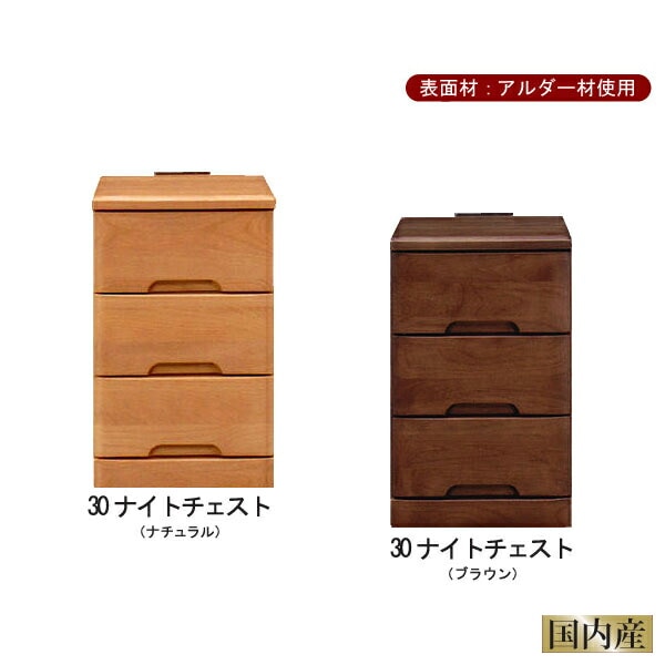 ナイトチェスト 幅30 引出し3段 ナイトテーブル サイドテーブル コンセント付き アルダー材 ナチュラル ブラウン 完成品 日本製 大川家具