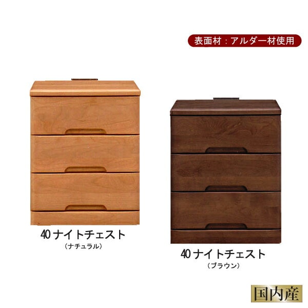 ナイトチェスト 幅40 引出し3段 ナイトテーブル サイドテーブル コンセント付き アルダー材 ナチュラル ブラウン 完成品 日本製 大川家具