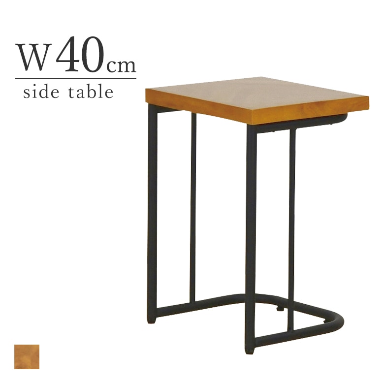 40サイドテーブル 幅40cm ブラウン ラバーウッド アイアン 完成品 ヴィンテージ レトロ ミッドセンチュリー