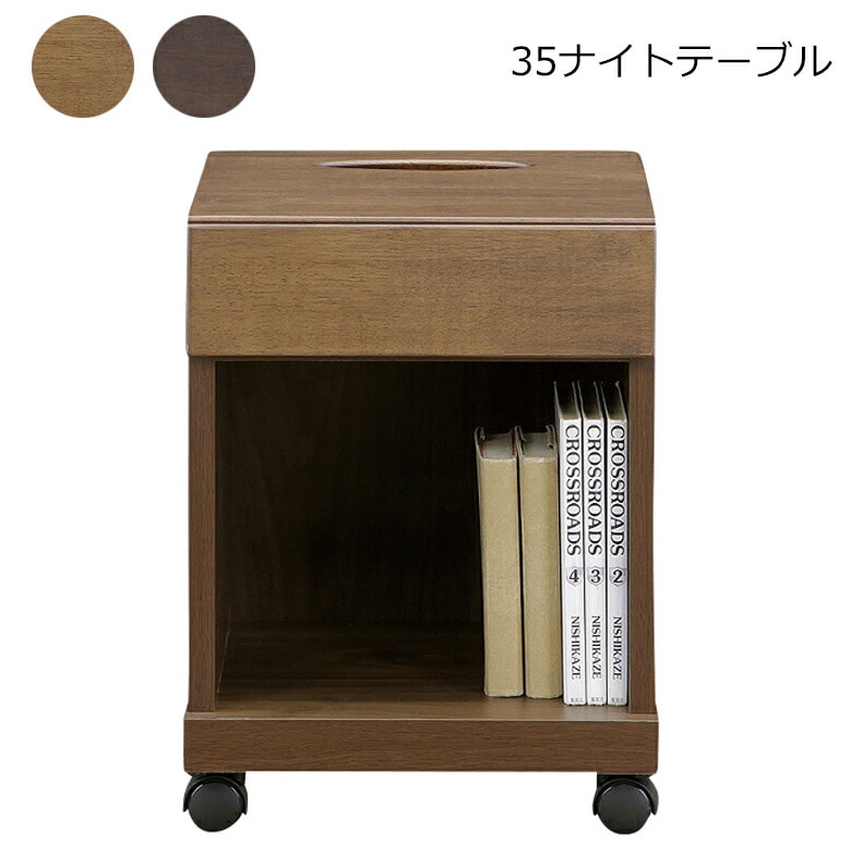 サイドテーブル ナイトテーブル キャスター付き ティッシュ箱収納 幅35cm ラバーウッド 日本製 国産 大川家具