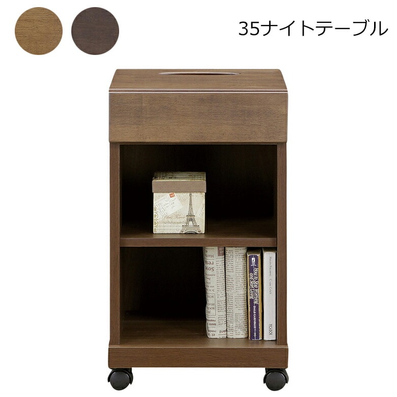 サイドテーブル ナイトテーブル キャスター付き ティッシュ箱収納 棚付き 幅35cm ラバーウッド 日本製 国産 大川家具