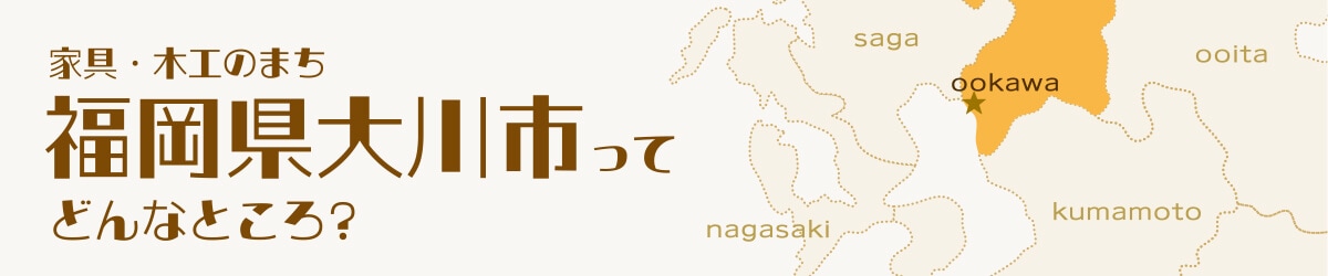 「家具・木工のまち」として知られる大川市は、多くの家具工場、問屋、小売店が立ち並び、家具に携わる様々な優れた技術が集結しています。