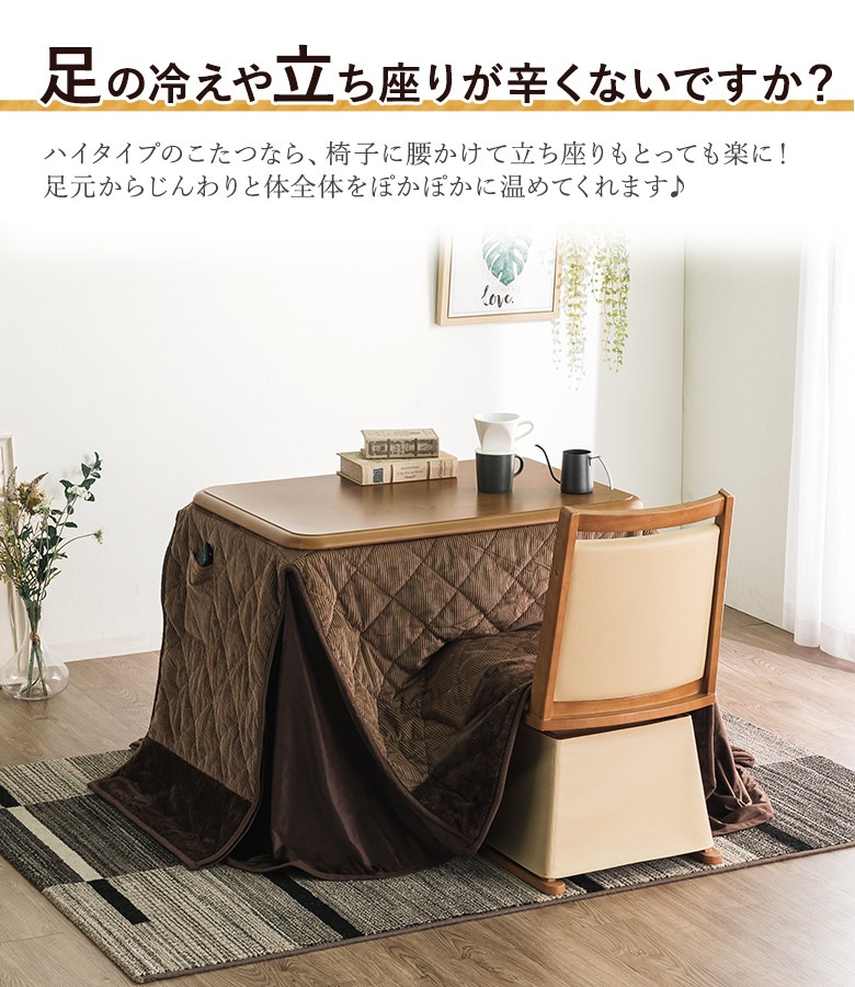 一人用こたつ デスクこたつ ハイタイプこたつ 90×60cm こたつテーブル パーソナルこたつ 机 デスクコタツ 1人用 幅90cm 高脚こたつ ダイニングこたつ 3点セット