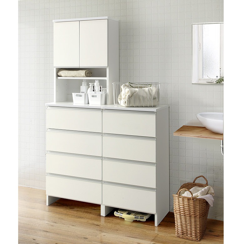 【5cm刻みでぴったりのサイズが見つかる!】洗面脱衣所 ランドリー収納 サニタリー収納 幅55cm 引出し付き 日本製 体重計 ホワイト ナチュラル ブラウン