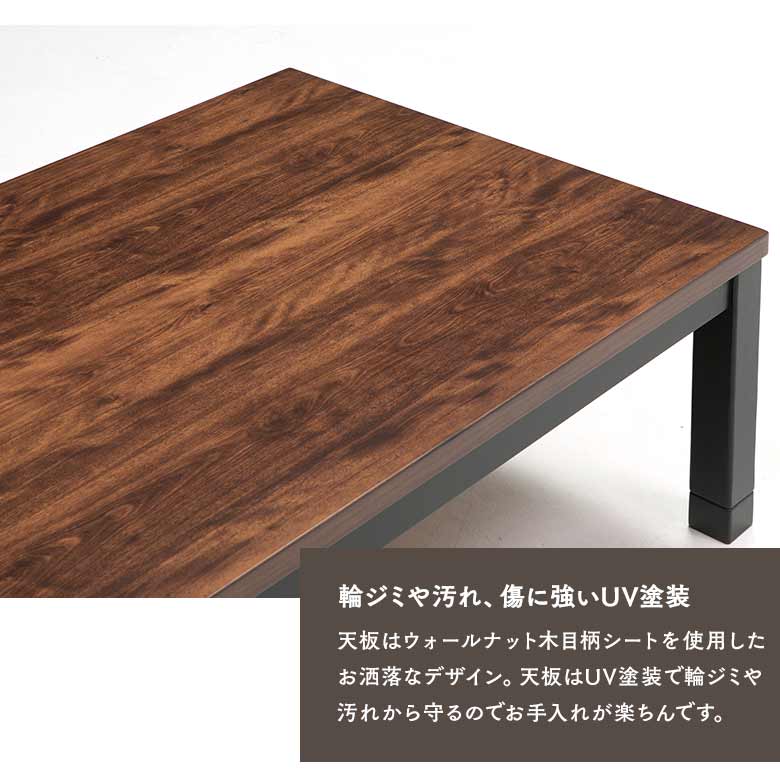 ウォールナット木目調 家具調こたつ 長方形 150×85cm 継ぎ脚付き 【おしゃれなヴィンテージ調コタツ】炬燵 メトロ ハロゲンヒーター1年保証