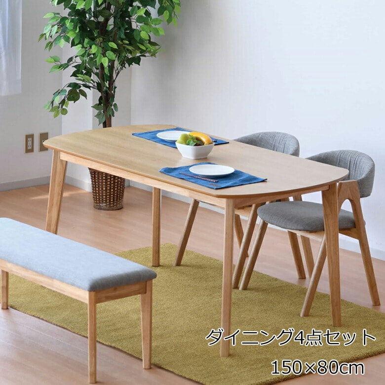 ダイニングテーブルセット 幅150 カフェセット 150×80 ベンチ付き 4点セット リビングテーブルセット ナチュラル オーバル 角丸い