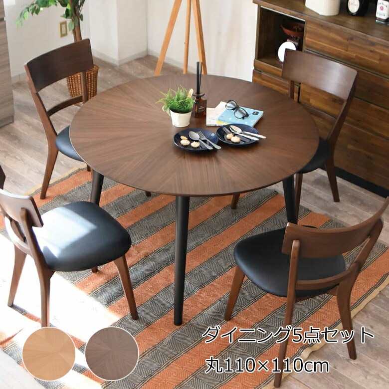 ダイニング5点セット 110丸 テーブルセット 幅110 ダイニングセット 4人掛け リビングテーブル オーク突板 ウォールナット突板 カフェ 円型 ナチュラル ブラウン