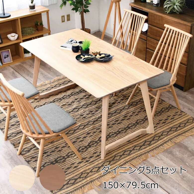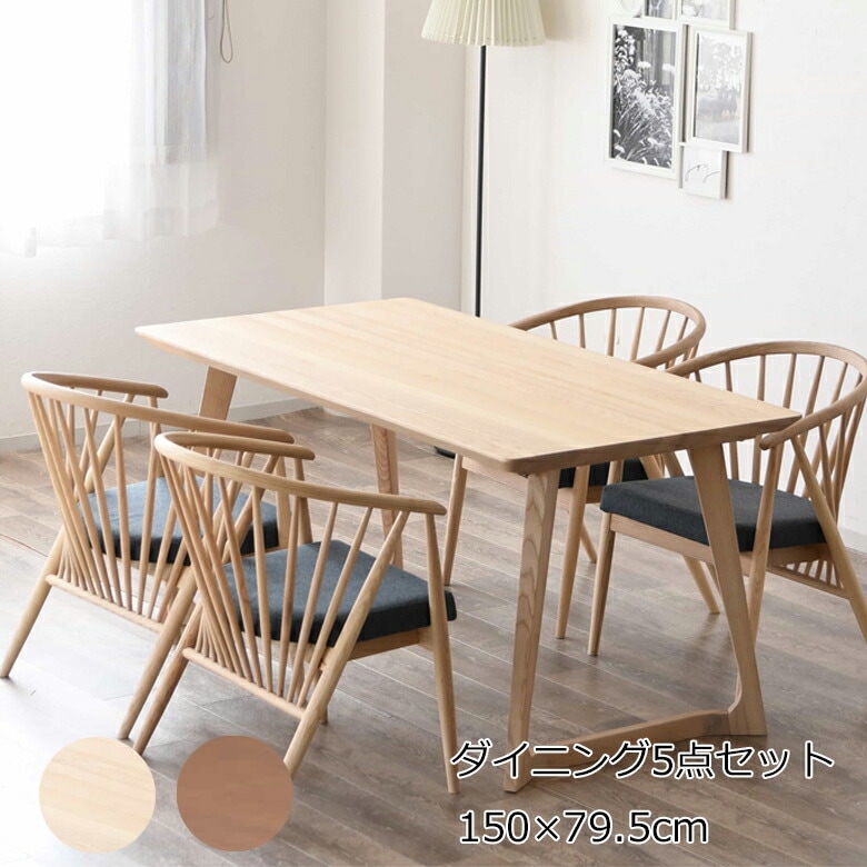 ダイニング5点セット 幅150 ダイニングテーブルセット 150×85cm 4人掛け アッシュ材 掃除ロボット対応 ホワイト ブラウン ハンギング可能 北欧 おしゃれ